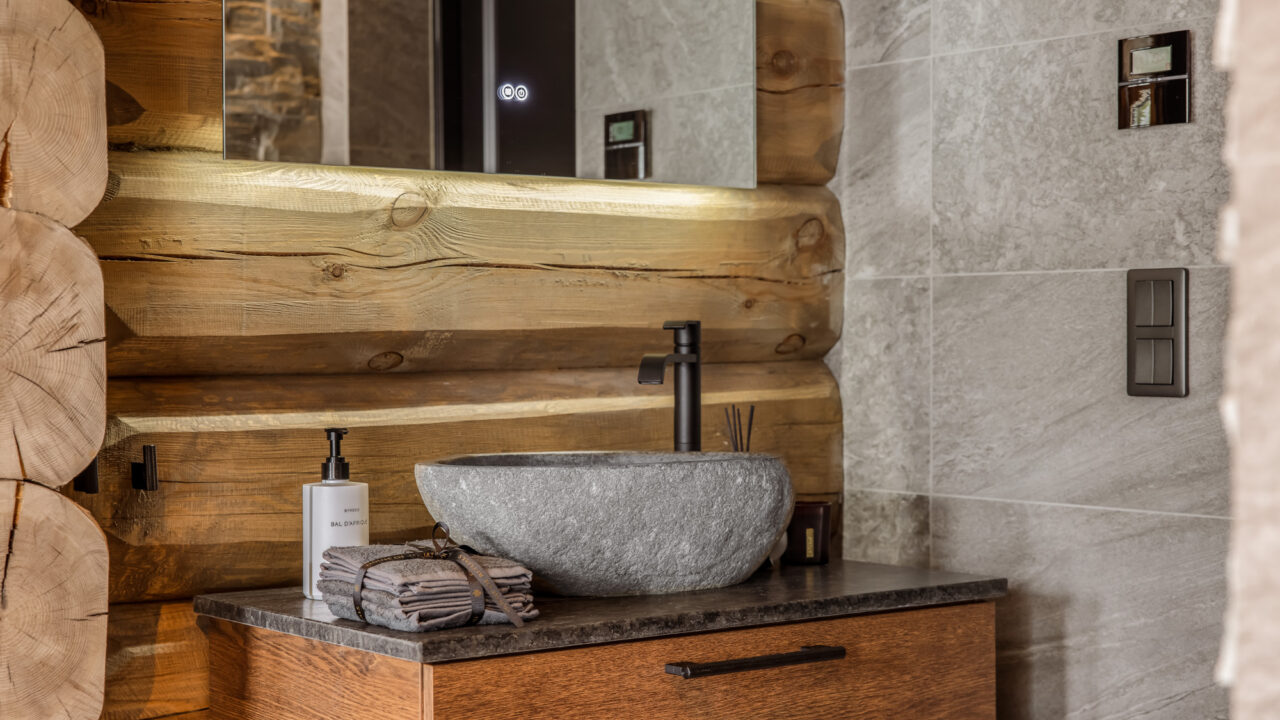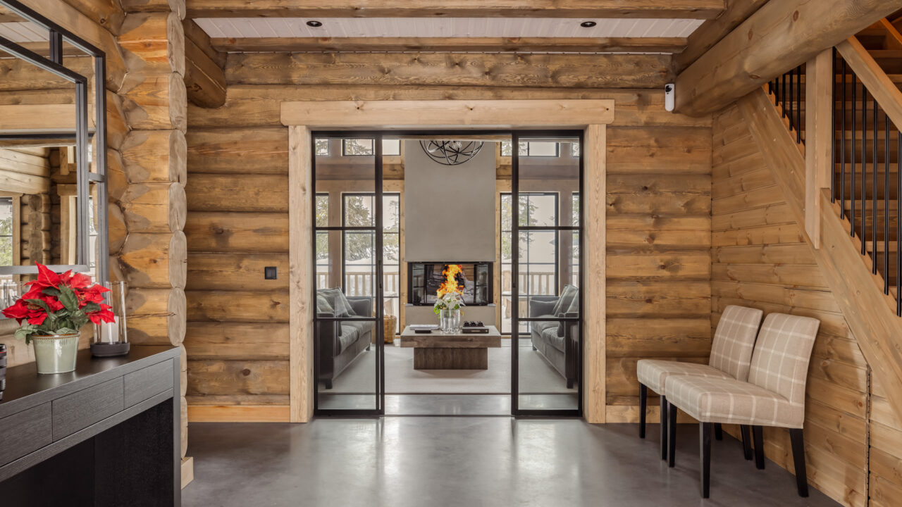 This chalet has a welcoming lobby with an amazing fireplace and ultra comfortable sofas, perfect to gather around after a day in the slopes. There is a separate ski equipment room and a utility room with washing machine and dryer and for cars there is a heated garage.