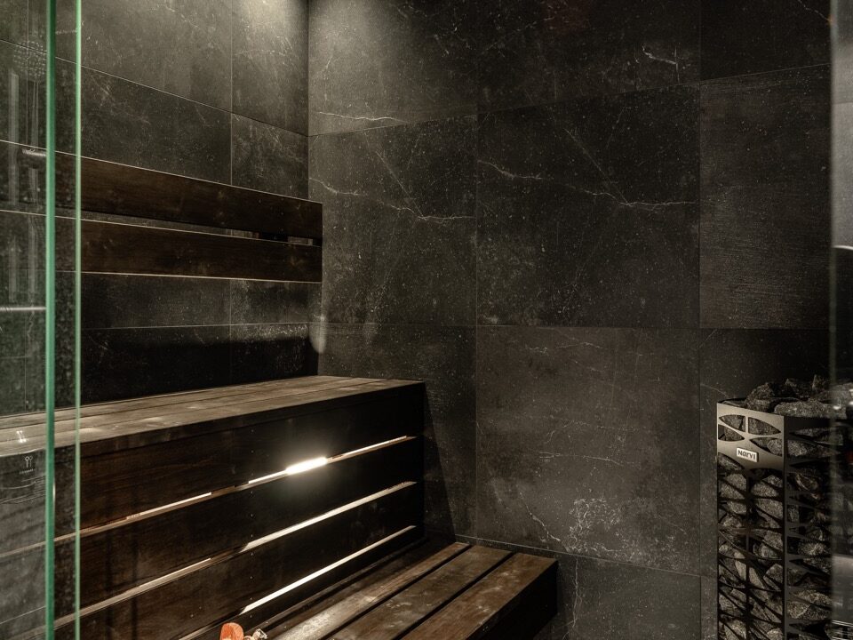 - A spacious sauna with double showers and a bathroom.