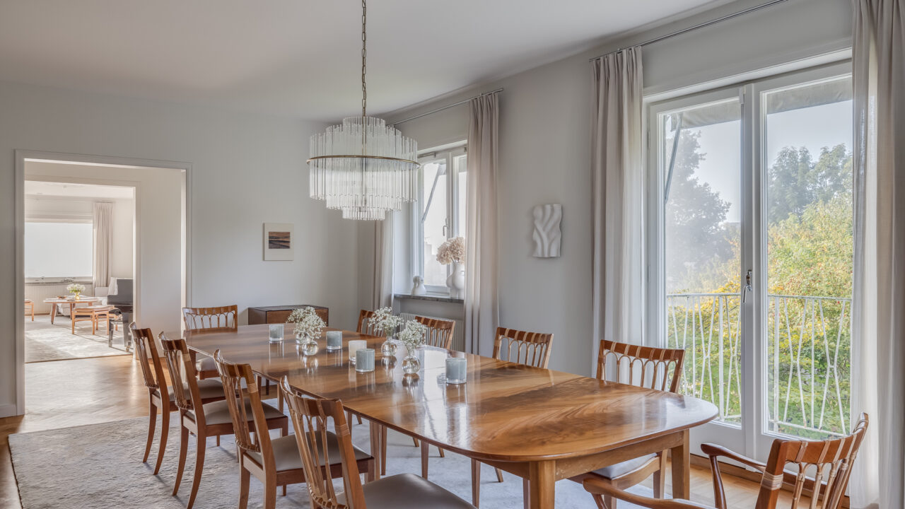 One of Villa Draupner’s standout features is the spectacular 14-meter-long pool, perfect for relaxing swims or hosting lively gatherings. Surrounded by a beautifully landscaped garden, the outdoor space offers a peaceful retreat with lush greenery and scenic views, ideal for quiet mornings with coffee or sunset dinners al fresco. The expansive garden is a private oasis that complements the villa’s luxurious atmosphere.