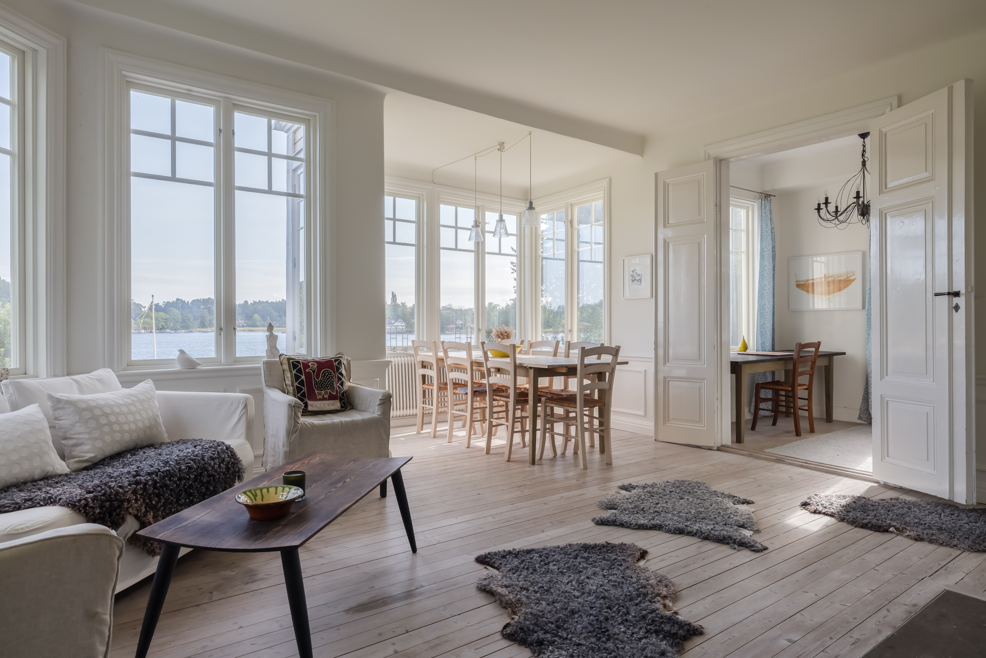 Villa Skärgårdsdröm is thoughtfully spread across a main house, two separate guest houses, and a dedicated dining pavilion. The layout is designed to create space and privacy while keeping everything connected through beautiful outdoor areas.