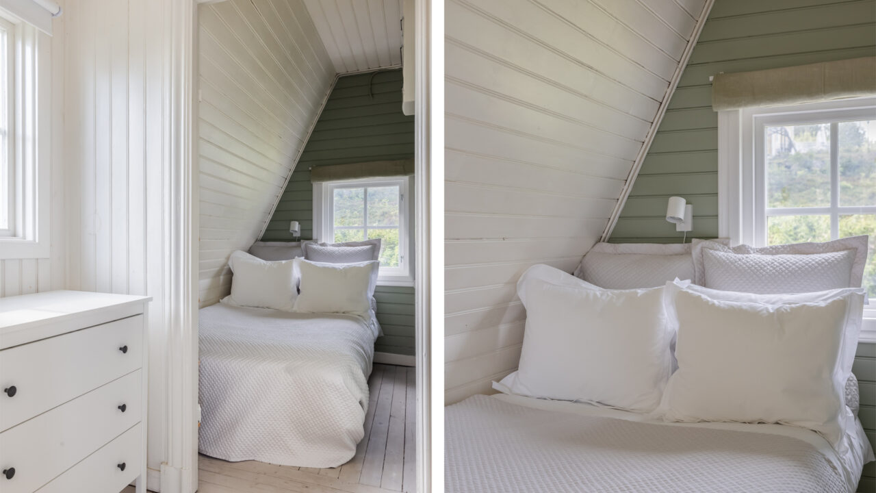 The villa sits in a lush garden filled with apple trees, with a private dock that makes it easy to head out and explore the islands. Right next to the garden you’ll find a shared beach, perfect for swimming on warm summer days, while children will love the trampoline and open lawns.