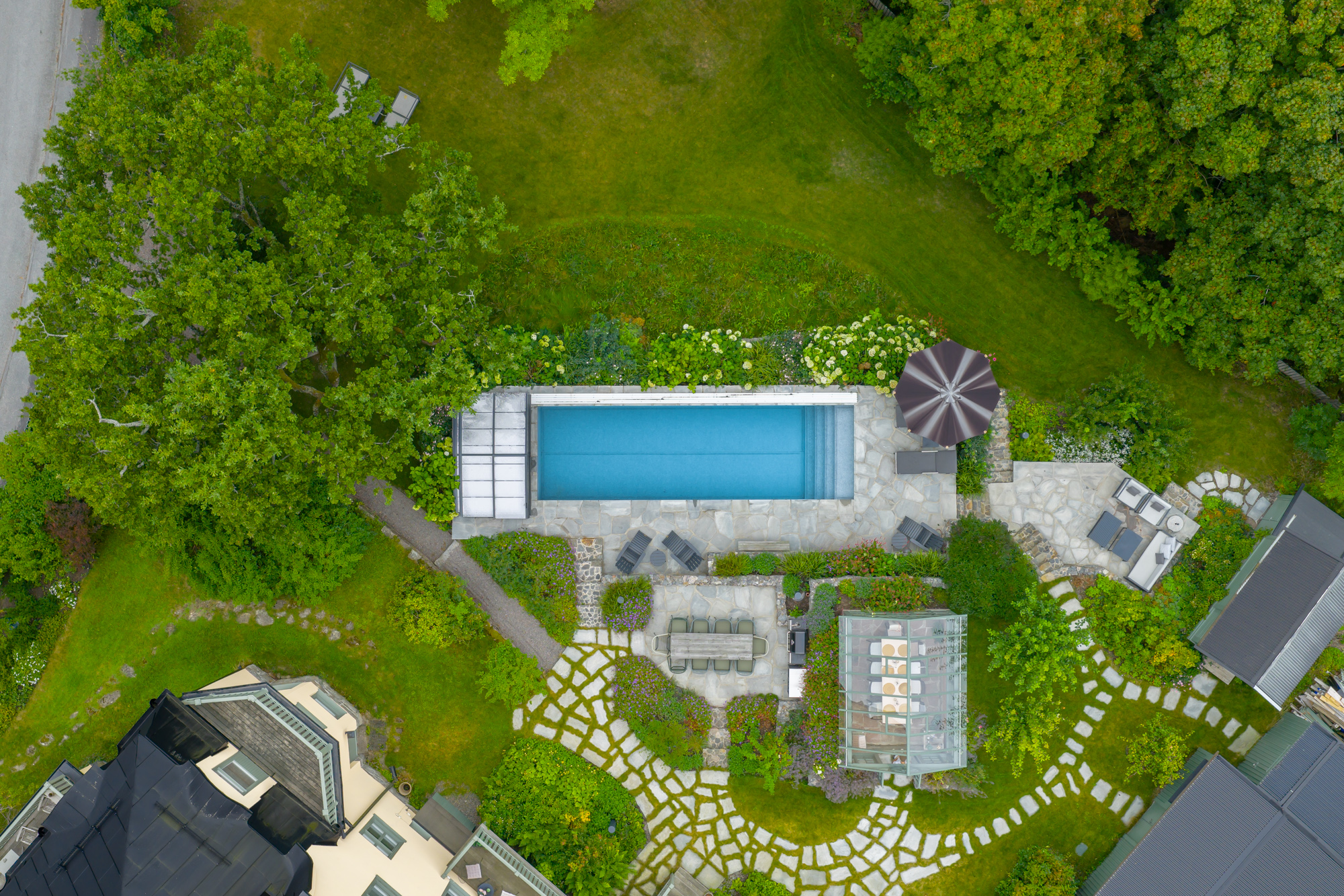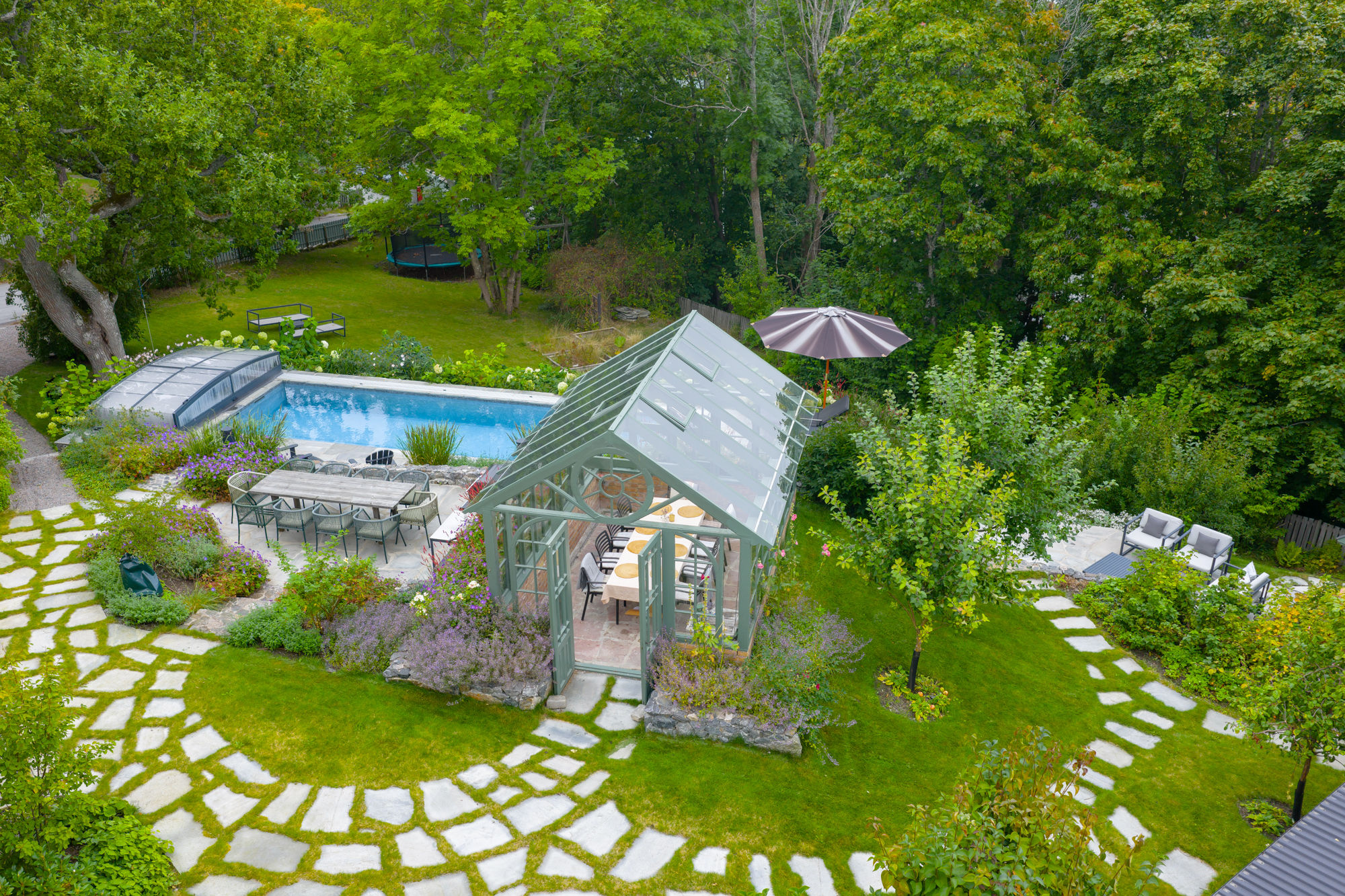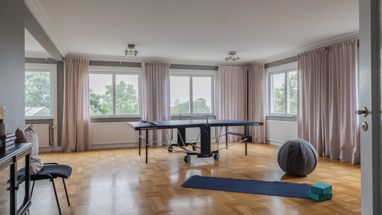 Outdoors, the lush garden frames a private swimming pool, barbecue area, and plenty of space for play and relaxation. The orangery provides a unique setting for long dinners or lunches that continue late into the evening, no matter the weather. Just 300 meters from the villa you will also find the water’s edge, where a private boat can be arranged and docked – opening the door to Stockholm’s world-famous archipelago. With its thoughtful mix of elegance and family-friendly amenities, Villa Saltis balances luxury and comfort in a way that few homes can.