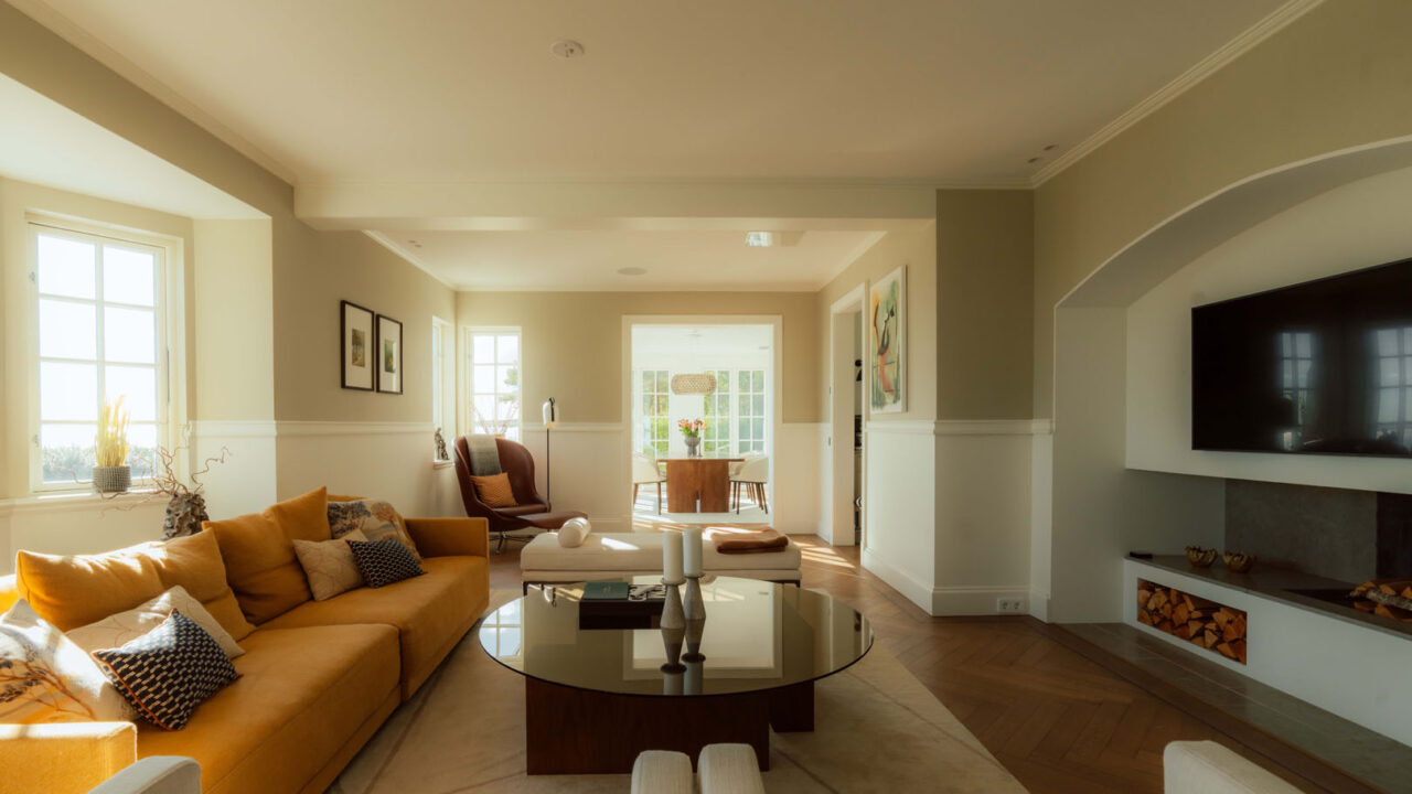 The villa spans over 320 square meters, comfortably accommodating up to 10 guests. Each bedroom is furnished with premium DUX beds, ensuring the highest standard of comfort and rest. The living spaces are airy and refined, featuring a fully equipped chef’s kitchen, stylish lounges, and Samsung Frame TVs throughout, combining smart functionality with a sleek, artistic aesthetic.