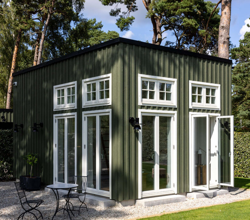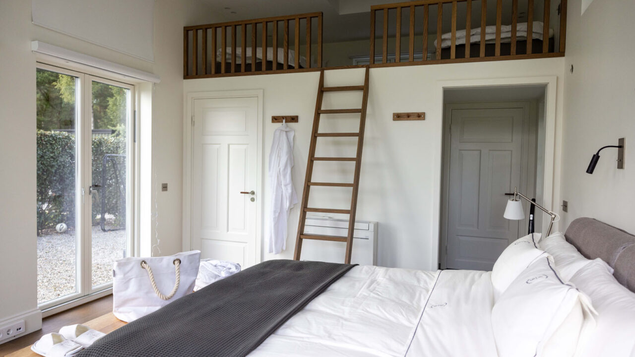 Perfect for guests seeking extra privacy, the Guest House includes a king-size bed, dual wardrobes, an ensuite bathroom with shower and towel warmer, a separate lavatory, and a loft with two single beds. The guest house opens onto a quaint Patio with café-style seating.