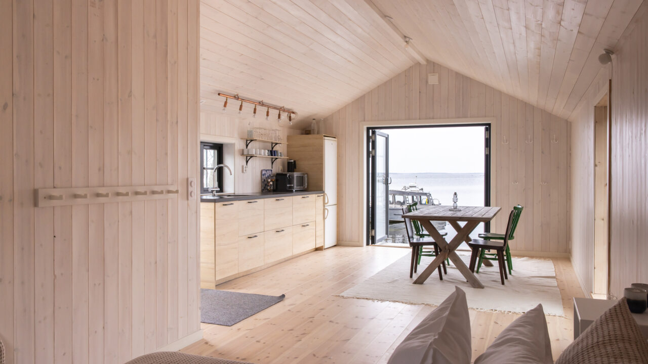 The second house comes with an open floorplan with a fully equppied kitchen, dining table, 2 beds, bathroom with toilet and sink. Down by the private beach you will find the kayak, SUP, small sail boat which are perfect for summer fun. The residence is high-standard throughout. From state-of-the-art kitchen appliances to newly renovated bathrooms. It´s a perfect combination of comfort and archipelago charm.