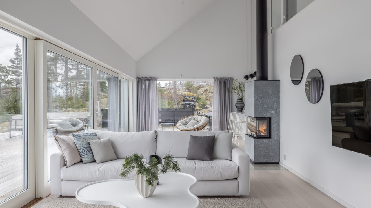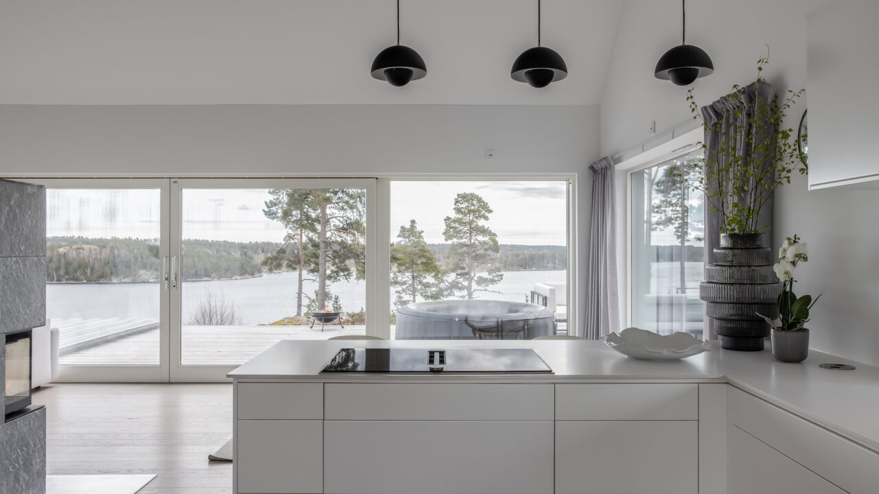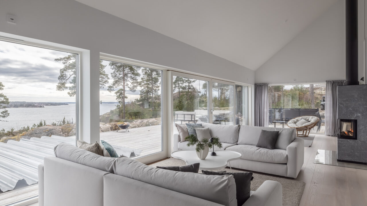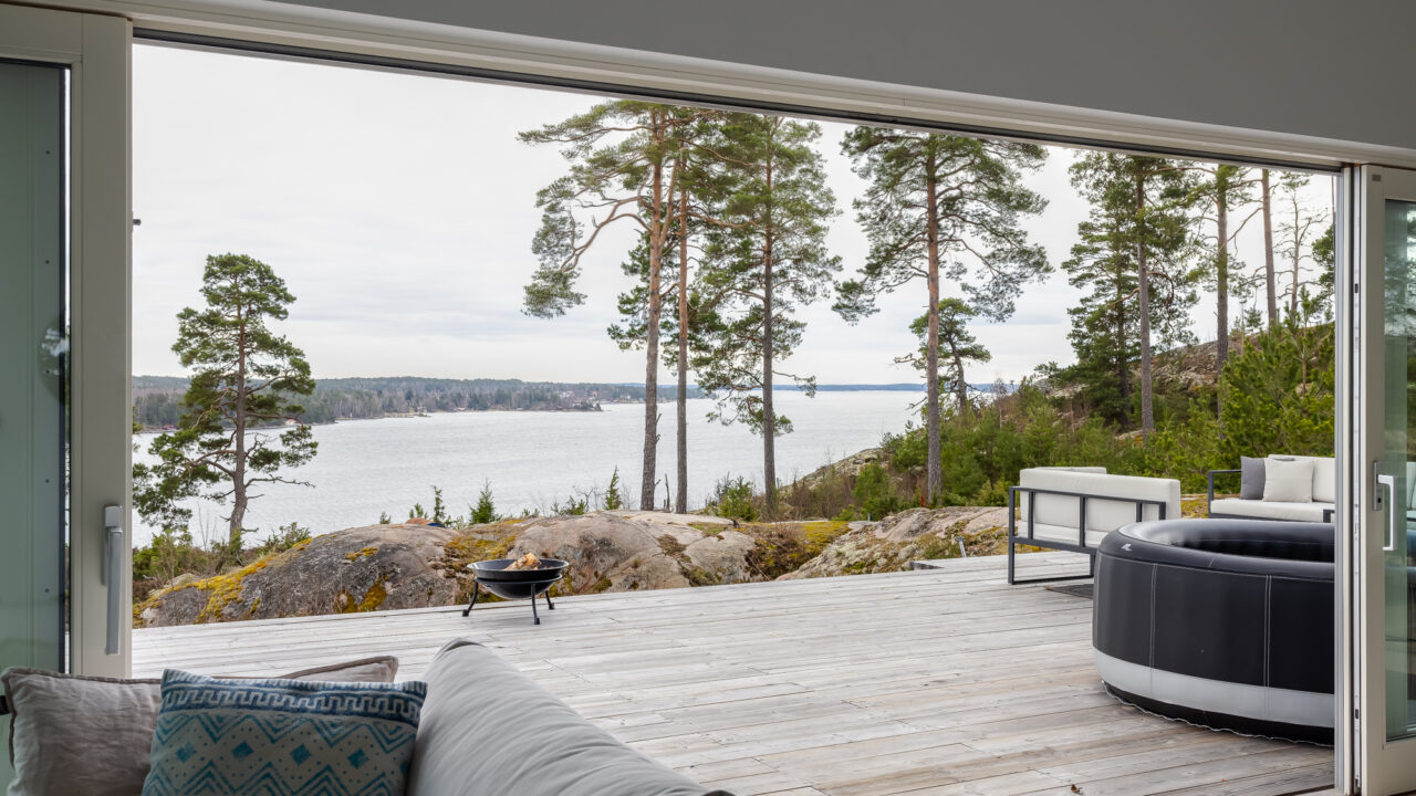 A modern luxury retreat near Vaxholm in the Stockholm archipelago, boasting a stunning heated pool. Enjoy panoramic views, sleek design, and top-tier amenities for up to 10 guests.