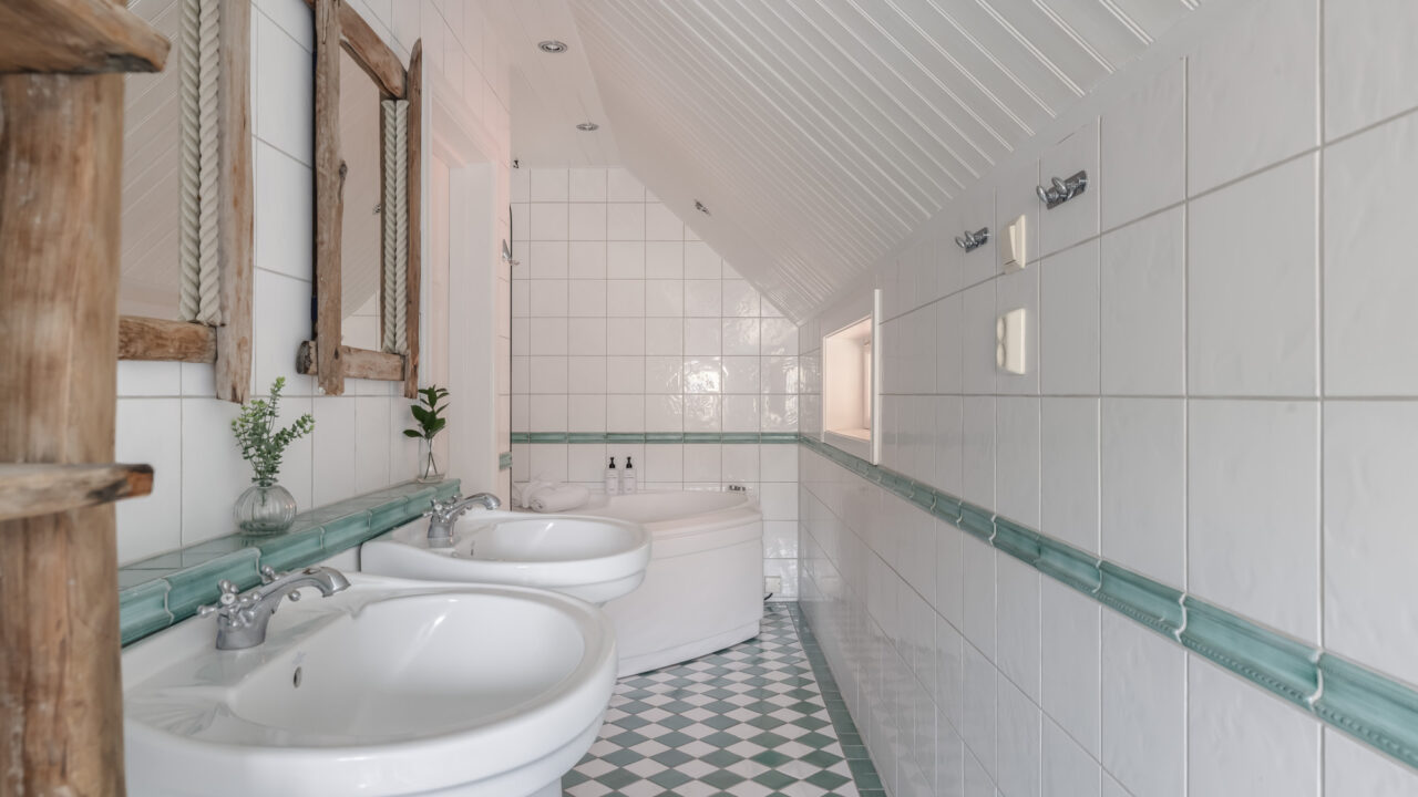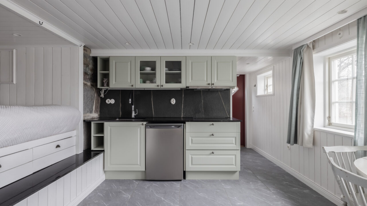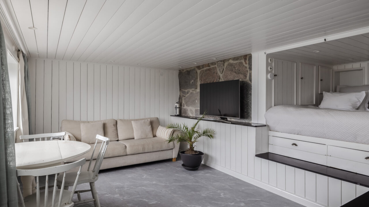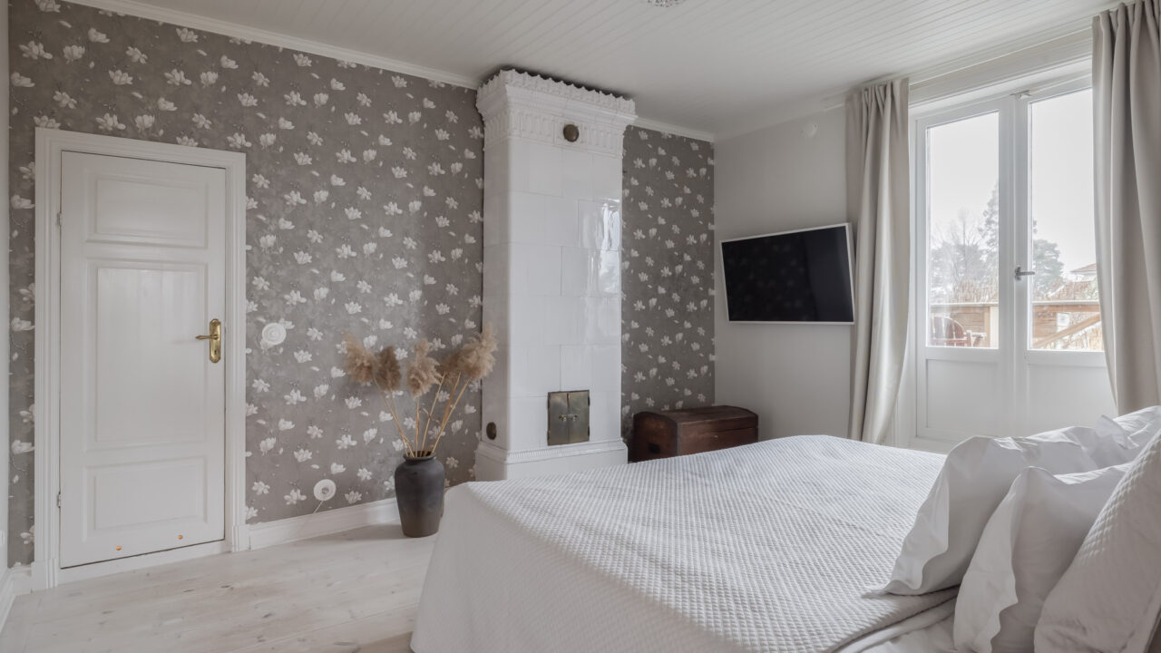 Built in 1906, this beautifully preserved three-story villa combines timeless Scandinavian architecture with modern comforts. The spacious ground floor features a chef’s kitchen, fully equipped with double sinks, a gas stove, and ample prep space—ideal for cooking together with family and friends. The adjoining dining area seats up to 12 guests, leading to a cozy living room with a 65-inch TV and direct access to a 65m² veranda overlooking the tranquil Resaröström.
