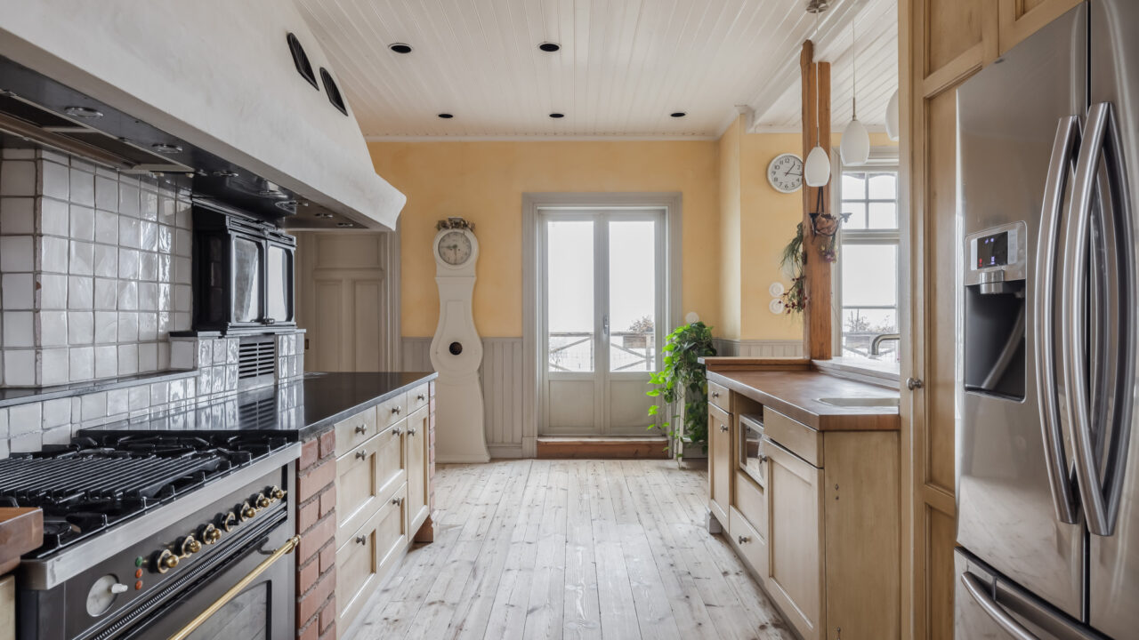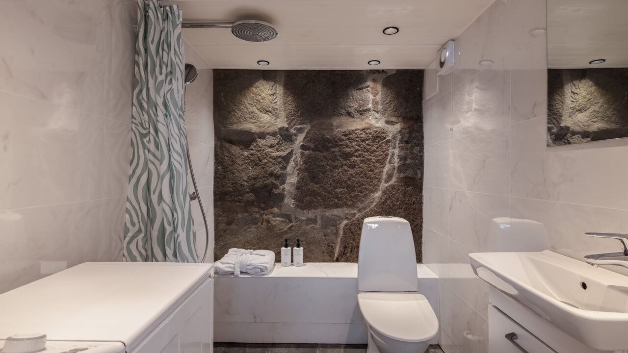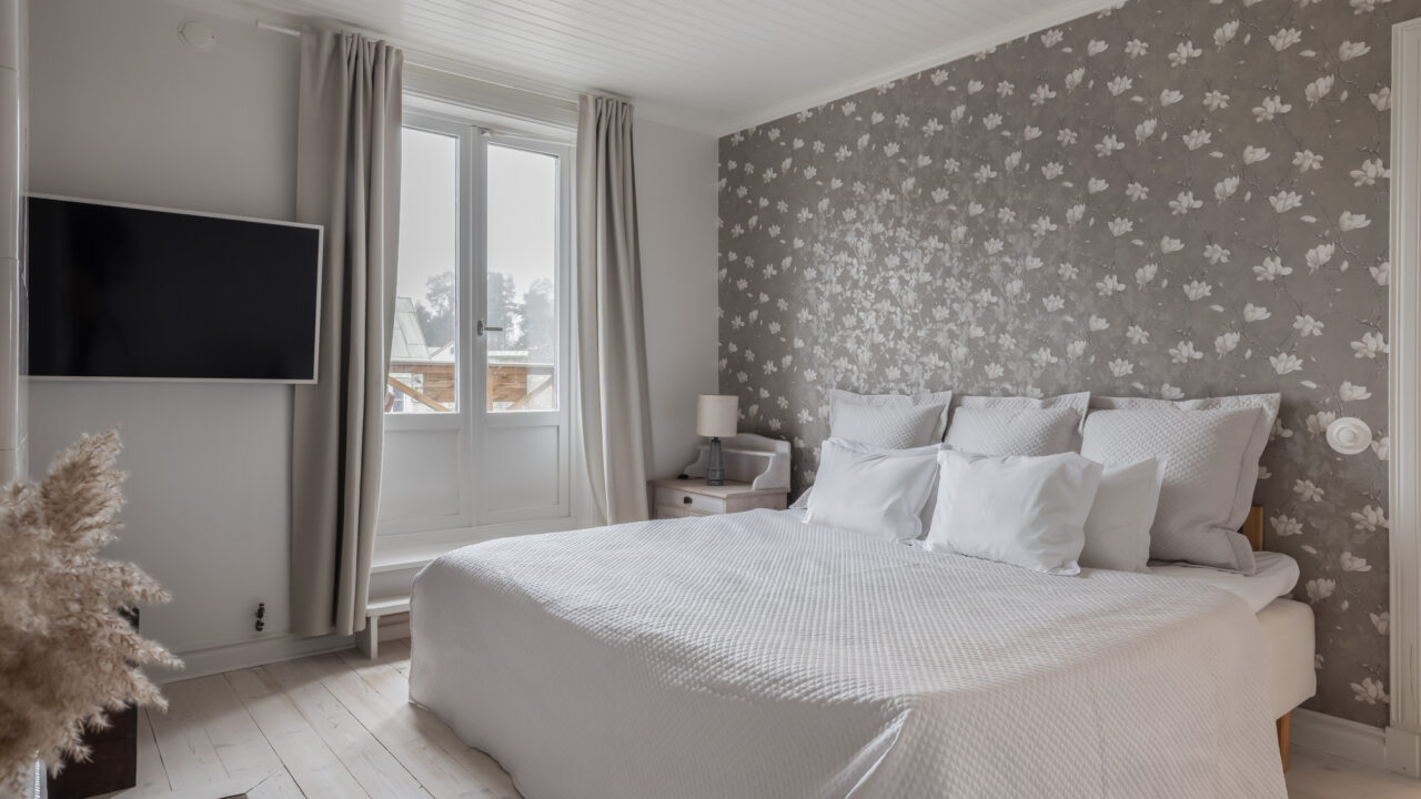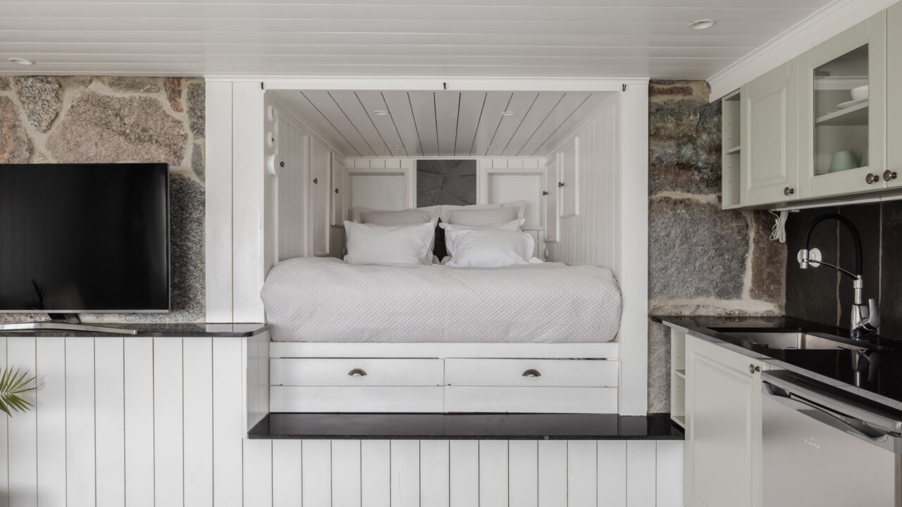 Built in 1906, this beautifully preserved three-story villa combines timeless Scandinavian architecture with modern comforts. The spacious ground floor features a chef’s kitchen, fully equipped with double sinks, a gas stove, and ample prep space—ideal for cooking together with family and friends. The adjoining dining area seats up to 12 guests, leading to a cozy living room with a 65-inch TV and direct access to a 65m² veranda overlooking the tranquil Resaröström.