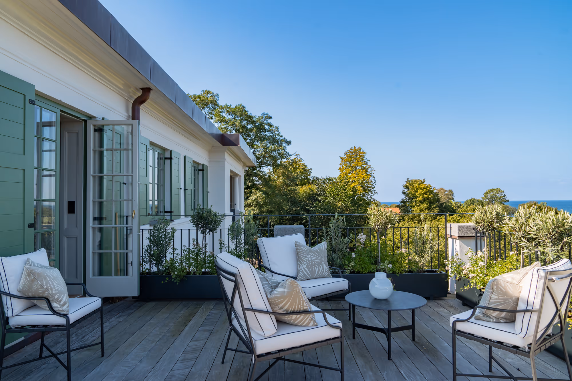 Villa Dagmar is located in the heart of Båstad, 500 metres from the town's most popular sandy beach and marina. Hotel Skansen, with its spa, massage services, and historic pier bathhouse, is a 3-minute walk — accessible in a bathrobe. The Nordea Open clay court tennis tournament takes place at the nearby centre court. Ängelholm-Helsingborg Airport is approximately 25 minutes by car; Copenhagen Airport around 90 minutes. Torekov, one of Sweden's most exclusive summer destinations, is 14 km away.