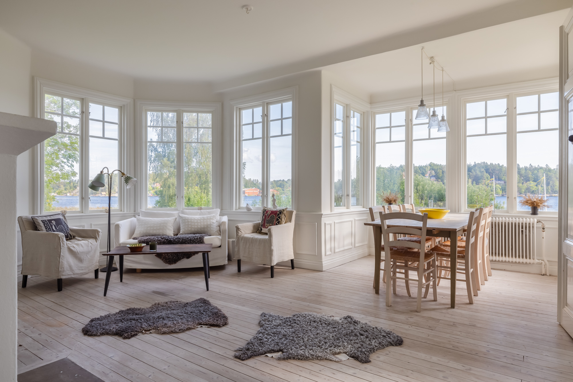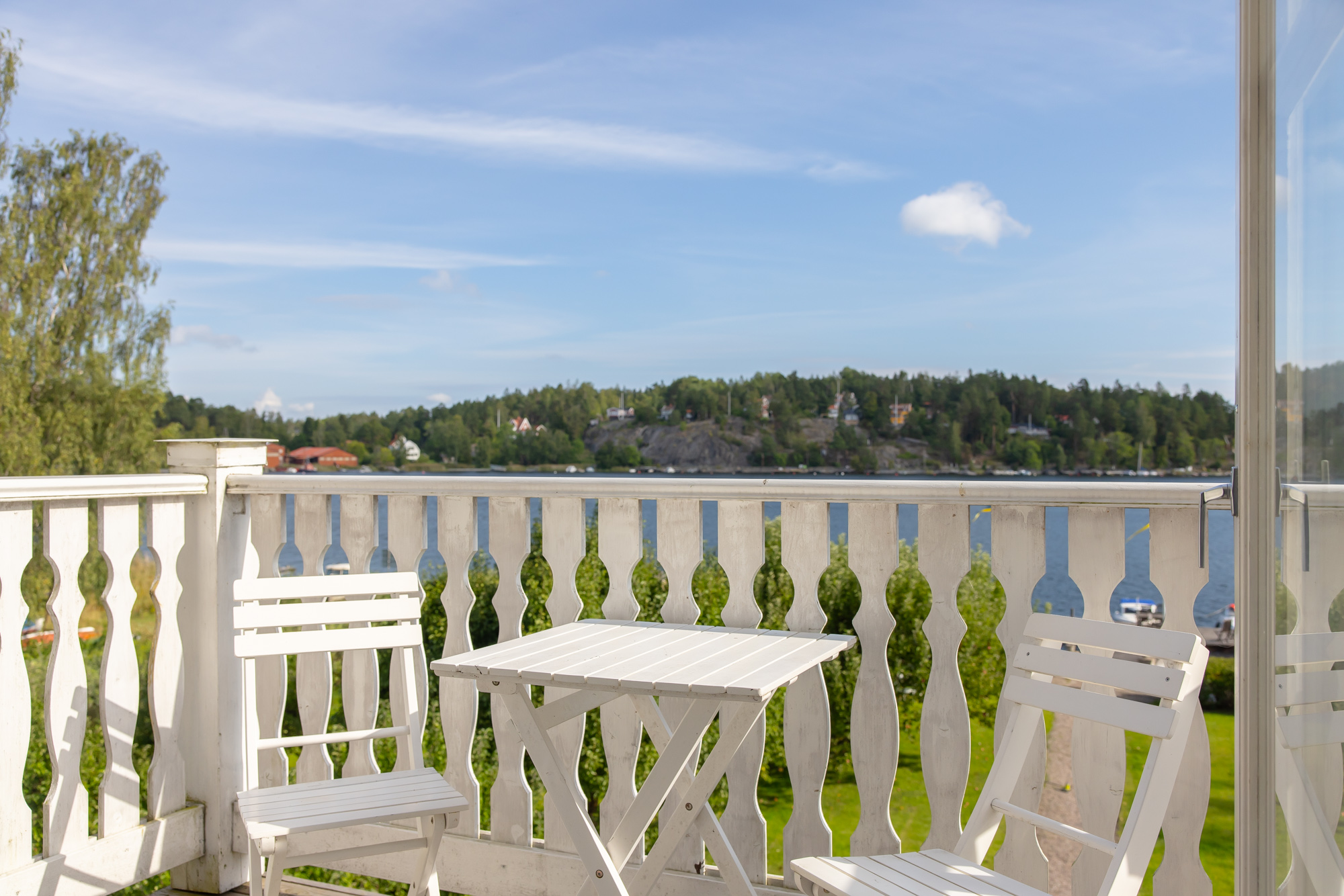 Villa Gullvik is located near Vaxholm, the largest hub of the Stockholm archipelago, reachable in five minutes by boat. The surrounding archipelago offers more than 30,000 islands to explore by water, with neighbouring islands offering restaurants, cafés, and hidden swimming spots. Stockholm city is approximately 45 minutes by boat or car.