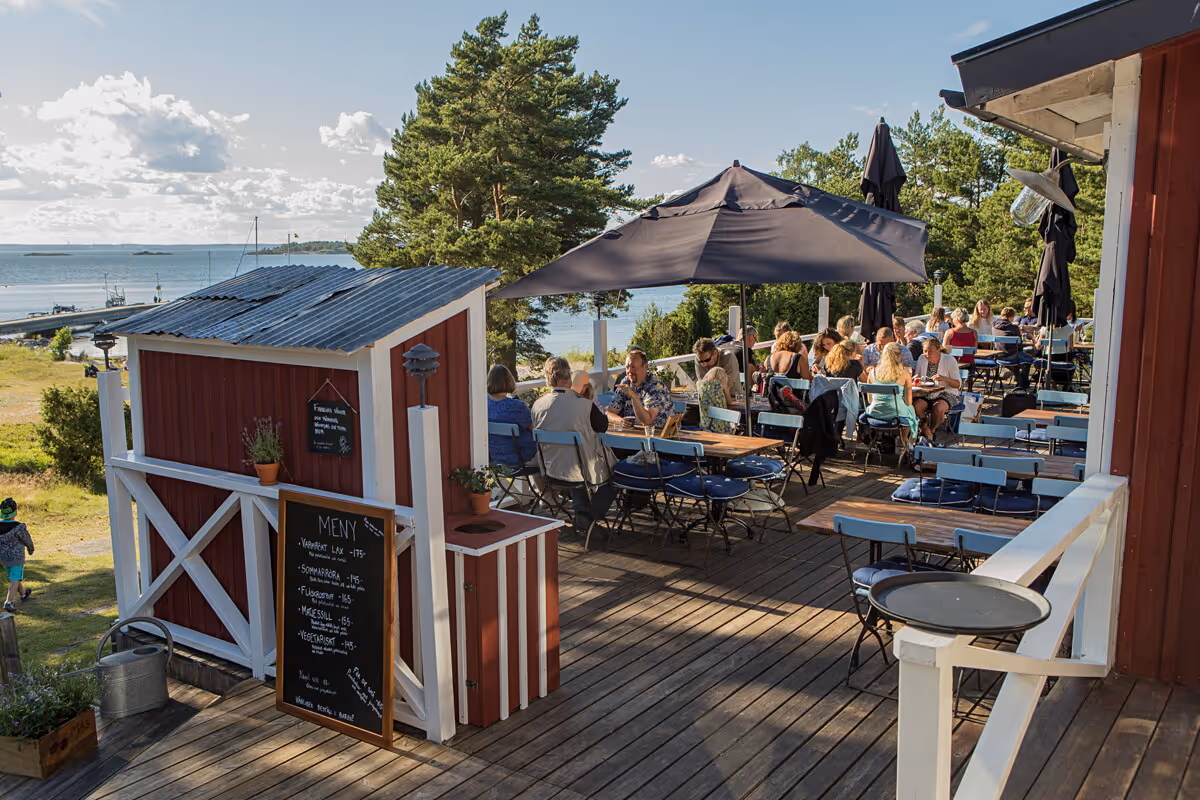 A Sandhamn institution since the 1600s. The menu is rooted in Swedish archipelago classics — fresh seafood, smoked salmon, and seasonal ingredients served without fuss. In summer, the harbour terrace is one of the finest spots in the archipelago for a long lunch or an unhurried dinner.